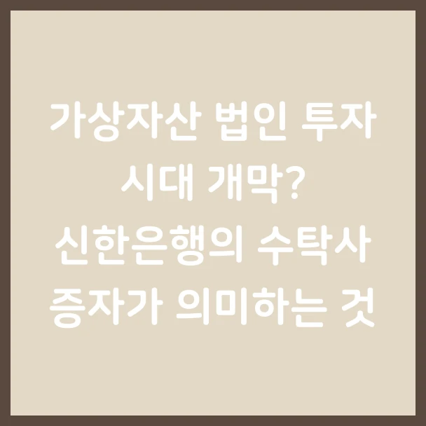가상자산 법인 투자 시대 개막? 신한은행의 수탁사 증자가 의미하는 것