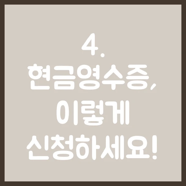 현금영수증을 발급받기 위해서는 국세청에 본인 명의의 휴대폰 번호를 등록하거나, 현금영수증 전용 카드를 발급받아야 합니다. 현금 결제 시 사업주에게 등록된 휴대폰 번호나 카드를 제시하면 현금영수증이 발급됩니다. 잊지 말고 꼭 챙기세요!