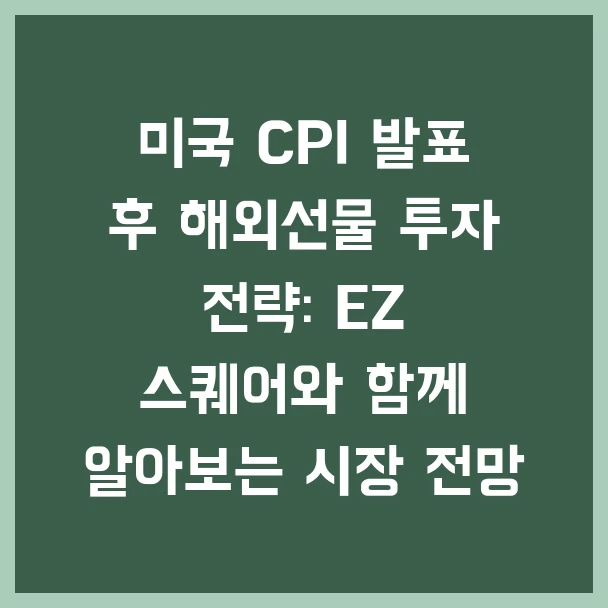 해외선물 투자는 높은 수익률을 기대할 수 있지만, 그만큼 리스크도 큽니다. CPI 발표와 같은 경제 지표를 꼼꼼히 확인하고, 전문가의 도움을 받아 신중하게 투자 결정을 내리시길 바랍니다. EZ 스퀘어가 여러분의 성공적인 투자를 응원합니다.