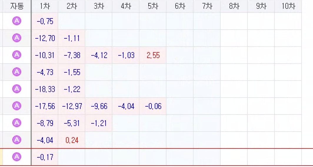 1차부터 상승하는 종목들은 임의로 매입단가를 높여서 2차를 추가 매수를 하여 수익을 내는 방식이다.