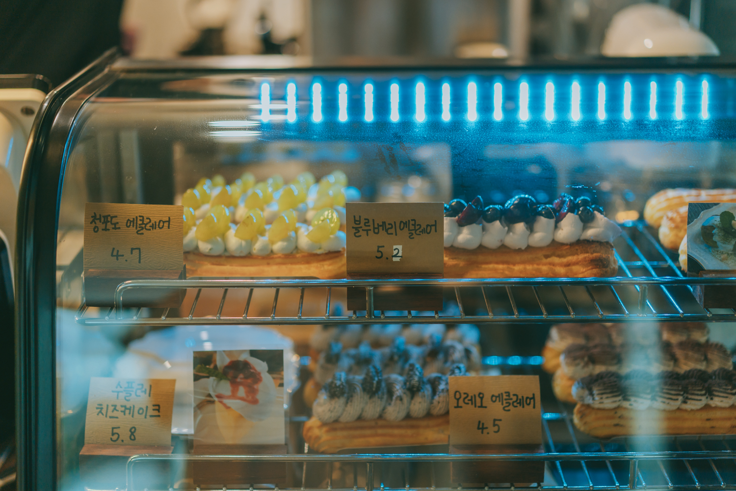 그리고 디저트류에는 블루베리 에끌레어 5,200원, 말차칩스콘 3,500원을 주문하였다.