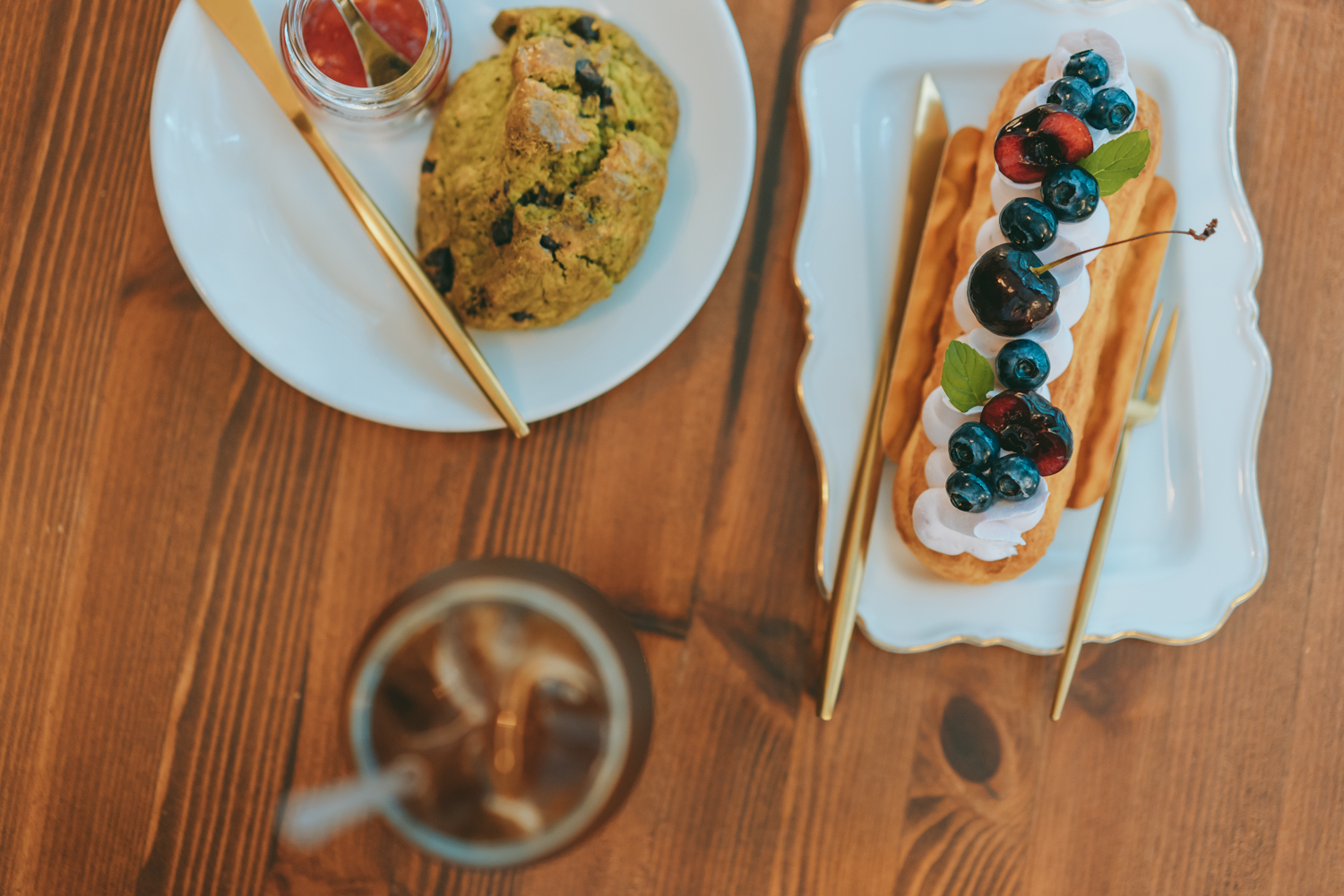 주문한 커피와 에끌레어, 말차칩스콘이 나왔다.