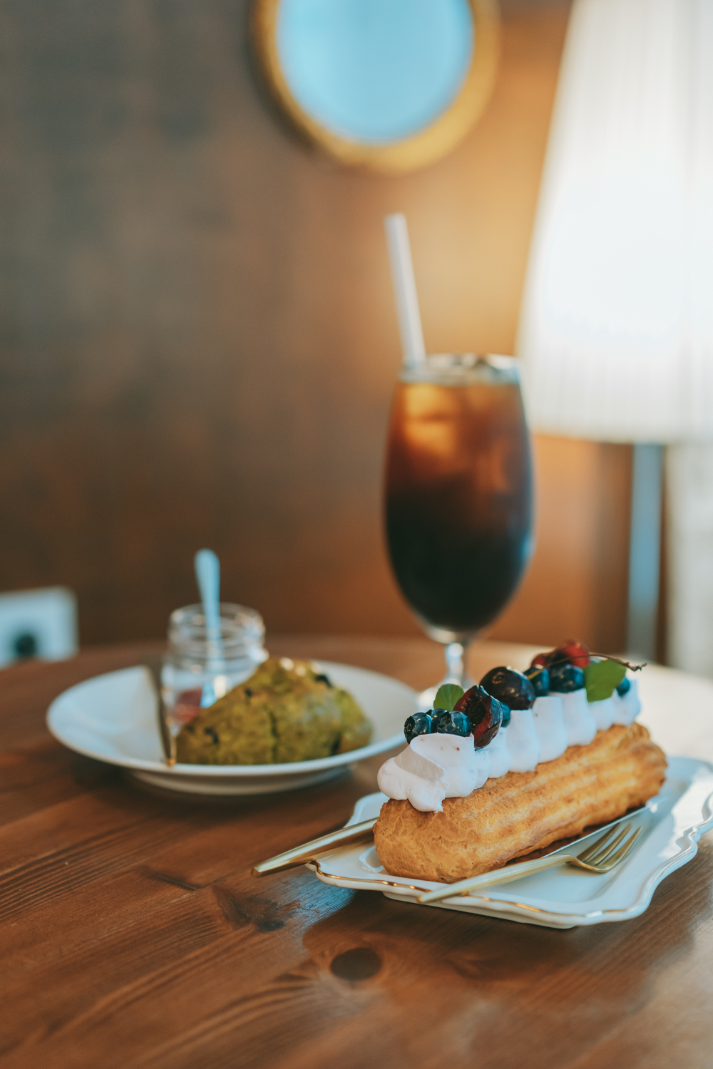 주문한 커피와 에끌레어, 말차칩스콘이 나왔다.