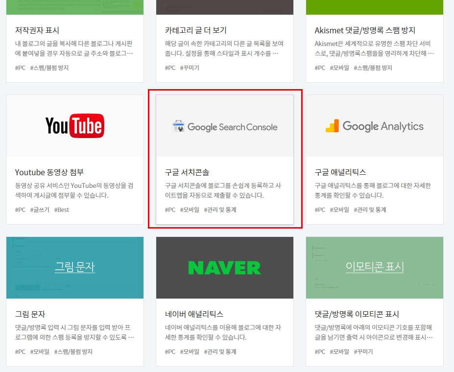 아래쪽으로 스크롤을 움직이다보면 구글 서치콘솔이라는 플러그인이 보인다.