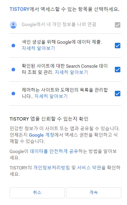 다시 구글 서치콘솔 팝업창이 나타난다.