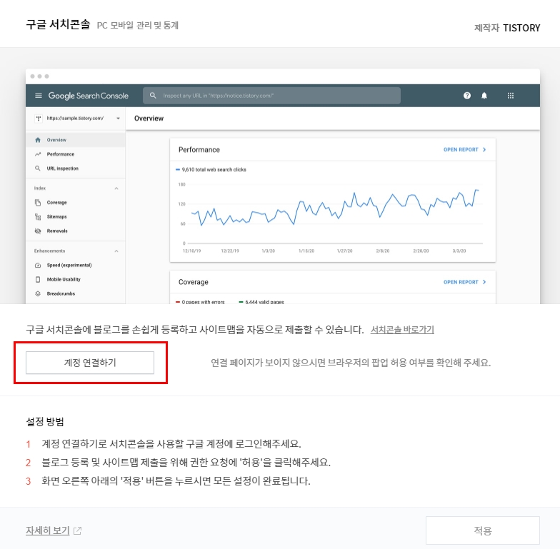 구글 서치콘솔 팝업창이 뜬다.