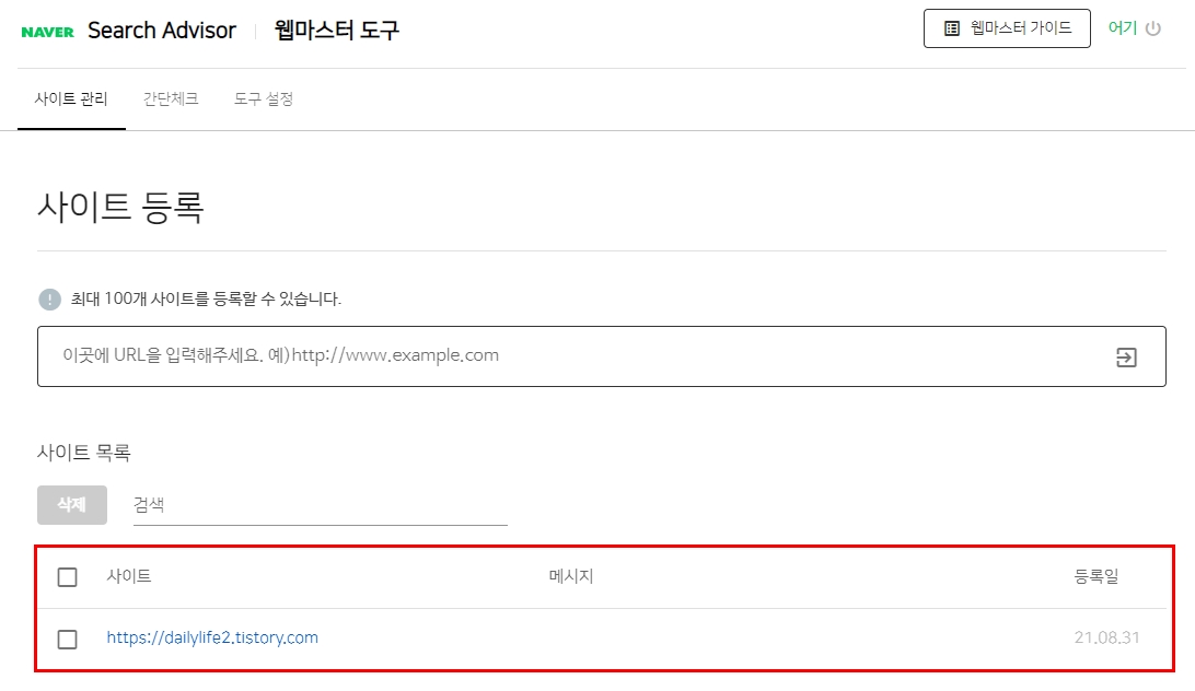 거기에 내가 사용하고 있는 티스토리 블로그 주소를 입력해준다.