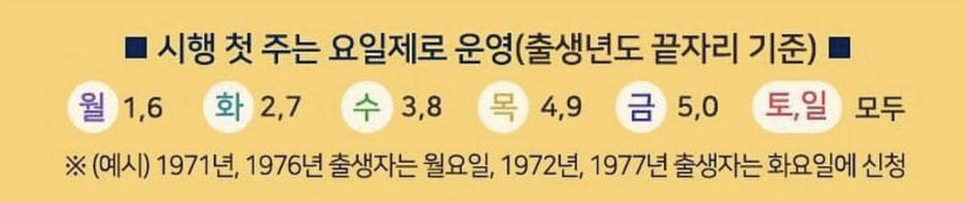예) 출생연도 끝자리 1,6으로 끝나는 사람은 첫날인 6일에 신청 가능합니다.