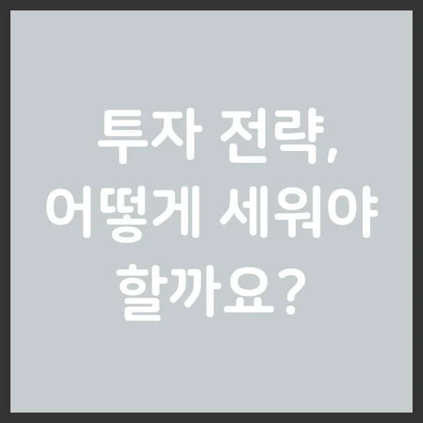 📈 투자 전략, 어떻게 세워야 할까요?